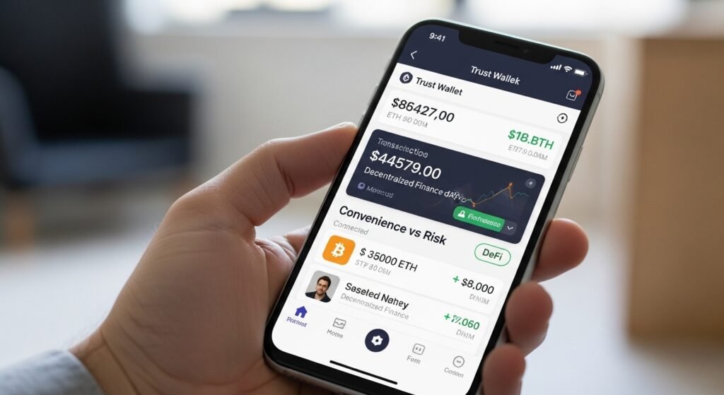 After that incident, I shifted a lot of my assets to Trust Wallet and MetaMask on my phone. It felt safer because I had the seed phrases written down and knew the funds weren’t sitting on an exchange. But new problems showed up.